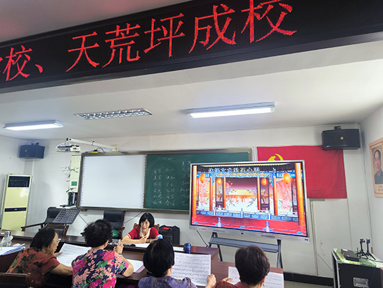 王惠芬老師利用高清投影設備,將曲譜唱詞、身段分解圖實時投映至幕布。學員可同步對照唱腔節奏與情感表達要點,尤其對“休怪文龍鐵石心腸”中復雜的情感轉折進行逐句拆解。這種可視化教學顯著提升了學習效率,一位銀發學員感慨:“以前學唱靠‘口耳相傳’,現在看屏幕就能掌握氣口和韻律,連眼神細節都一目了然。”
