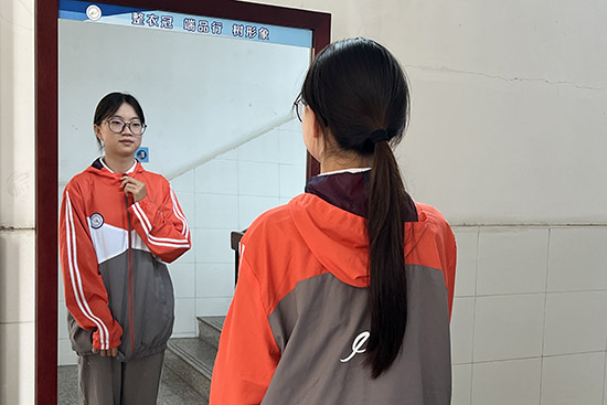 在教室鏡前或與同學互檢,從頭到腳,審視細節,確保整體形象整潔、規范。