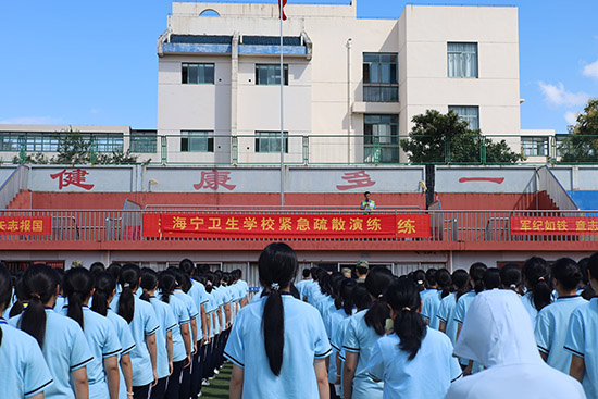 為增強高一新生的消防安全意識與應急避險能力,將安全教育融入軍訓實踐,9月25日,海寧衛生學校(海寧市綜合高級中學)在軍訓期間組織全體高一新生開展消防應急疏散演練,以實戰化場景筑牢校園安全“防火墻”。?