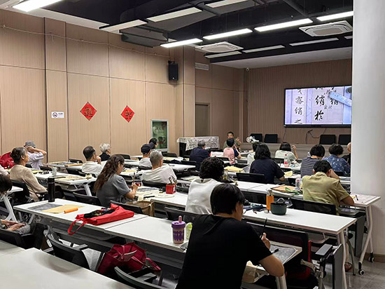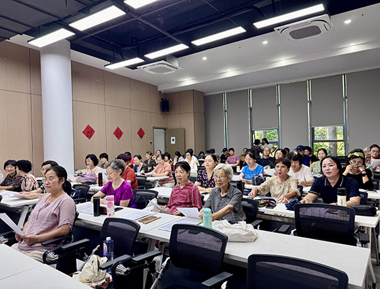 書法教室內,墨香彌漫,銀發學員們凝神靜氣,在老師的指導下從容運筆,一點一劃間盡顯漢字的韻致與人生的沉淀。形體舞班里,伴隨著舒緩優美的音樂,學員們身姿舒展、步履輕盈,在節奏中找回身體的活力,展現出中老年人特有的優雅與從容。而聲樂班精心排練的《浦沿潮涌》更成為了一道亮麗的風景線,這首承載著浦沿精神與文化的歌曲,在銀發學員的歌聲中煥發出別樣生機。