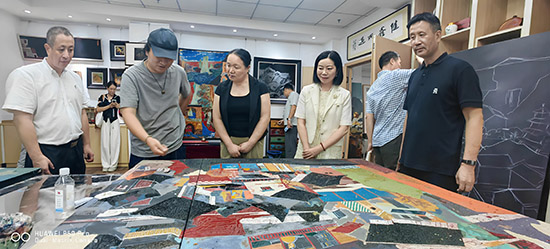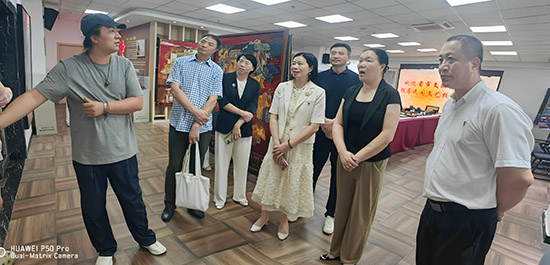 調研組實地走訪了學校多個非遺傳承實踐基地。在竹絲鑲嵌技藝傳承中心,曹鴻書記一行細致參觀了作品展示區、制作室、研學體驗區和生產車間,并與傳承中心負責人韓偉秋及在場學生親切交流。韓偉秋介紹了該技藝的歷史淵源與校園傳承現狀,重點匯報了在技藝創新方面取得的成果。曹鴻對學校將民間工藝傳承融入專業教學的模式表示高度認可,指出這是破解傳統技藝后繼乏人難題的根本之策。她特別肯定了師生在尊重傳統精髓基礎上的創新實踐,強調這關乎民間工藝的振興未來,是推動非遺項目走出困境、讓傳統工藝品融入現代生活的重要途徑。