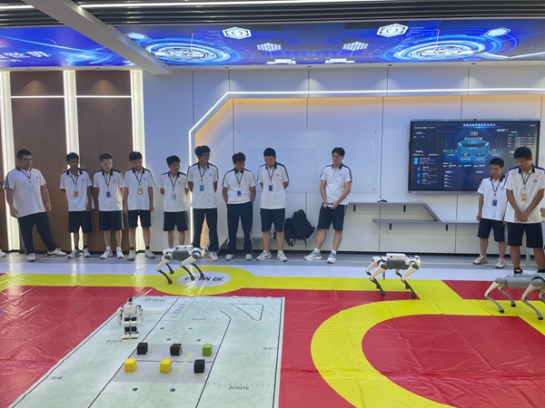 海職高資深教師吳周寧以“人工智能的過去、現(xiàn)在與未來”為主題,從技術(shù)發(fā)展史講到行業(yè)應(yīng)用場景,從深度學(xué)習(xí)、大語言模型等技術(shù)脈絡(luò),到智能制造、智慧醫(yī)療等就業(yè)方向,為新生們帶來生動的啟蒙課。理論講解結(jié)束后,“具身智能體驗(yàn)”環(huán)節(jié)更是點(diǎn)燃全場熱情——在吳老師的帶領(lǐng)下,同學(xué)們分組操作人形機(jī)器人與四足機(jī)器人,有的控制機(jī)器人完成行走、抓取動作,有的嘗試路徑規(guī)劃,在實(shí)操中感受機(jī)械與智能的融合。