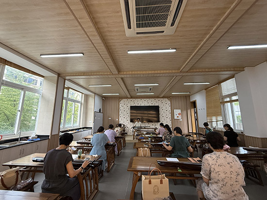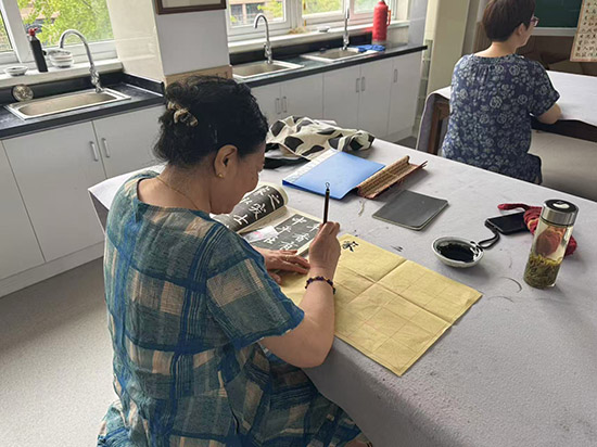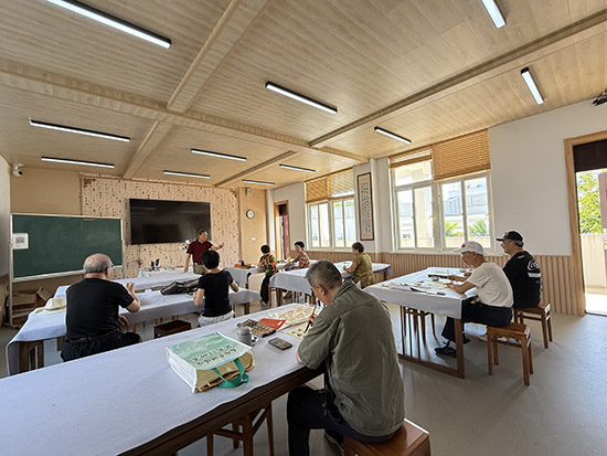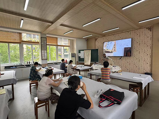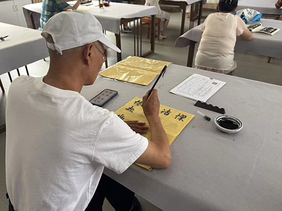 書法班的教室里墨香四溢,龔老師采用理論與實踐教學(xué)相結(jié)合的方式,對學(xué)員的書法基礎(chǔ)知識、臨帖技法等進(jìn)行專題培訓(xùn),對零基礎(chǔ)學(xué)員親自示范指導(dǎo)。學(xué)員們聚精會神認(rèn)真聽課、用心臨摹,現(xiàn)場充滿濃厚的學(xué)習(xí)氣氛。
