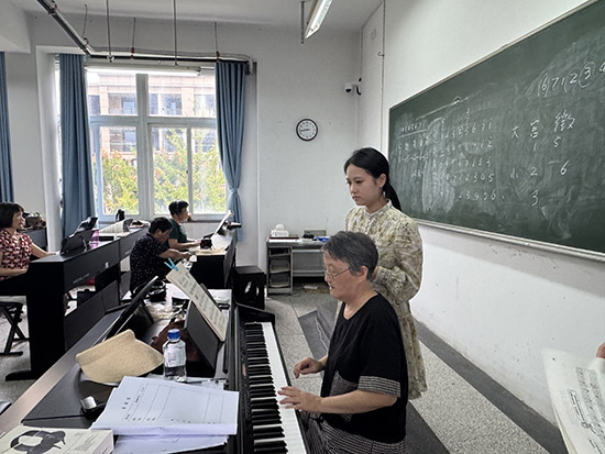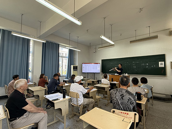這里有已經(jīng)能吹曲演奏的學(xué)員,也有零基礎(chǔ)的學(xué)員,沈老師根據(jù)他們的層次逐一指導(dǎo)。指尖在按鍵上靈活跳躍,婉轉(zhuǎn)旋律從樂器中流淌而出,勾勒出老年學(xué)員追逐音樂夢想的鮮活圖景。