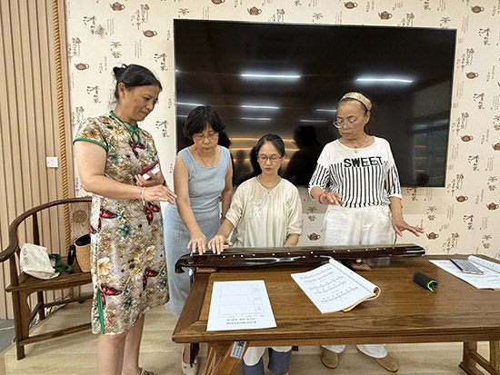 古琴班里,不僅有學(xué)習(xí)了一年多的老學(xué)員,也有新學(xué)員的加入。新學(xué)員從基礎(chǔ)指法“勾”開始學(xué)起 ,老學(xué)員開始《古琴吟》的學(xué)習(xí)。管老師采用“分層次,老帶新”的教學(xué)方式,讓學(xué)員在交流中進(jìn)步。