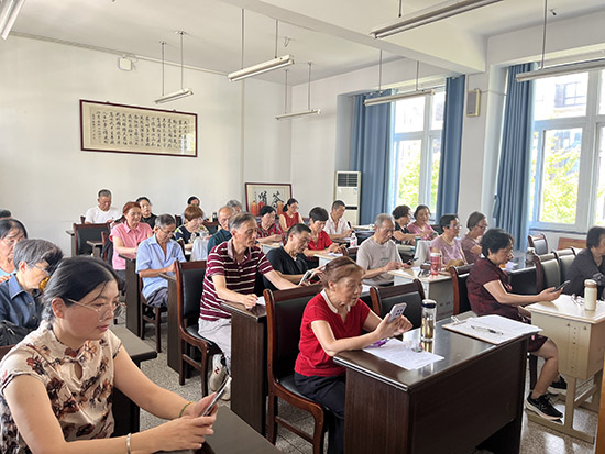 越劇長于抒情,以唱為主。課堂上,山老師從越劇流派特點、聲腔筑基、氣息的控制、方言咬字規(guī)則等方面展開教學(xué)。學(xué)員們在老師的指導(dǎo)下,認(rèn)真練習(xí),不僅為老年生活注入了文化活力,更搭建了傳統(tǒng)藝術(shù)傳承的“社區(qū)橋梁”。