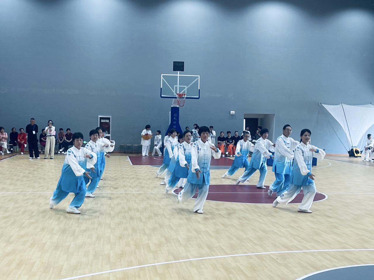 本次賽事吸引了眾多隊伍踴躍參與,暨陽街道、安華鎮等9個鎮(街道),諸暨市教育體育局及楓橋鎮內6個村(社區)的老年體協組織,共組建16支太極拳隊參賽。比賽設定統一展示項目為24式太極拳,各代表隊配備1名領隊兼教練,隊員10-12人(男女不限),出場順序抽簽確定,且要求隊員身著整齊統一的服裝,裁判團隊則由諸暨市老年體育協會太極拳運動委員會專業人員擔任,確保賽事公平公正。