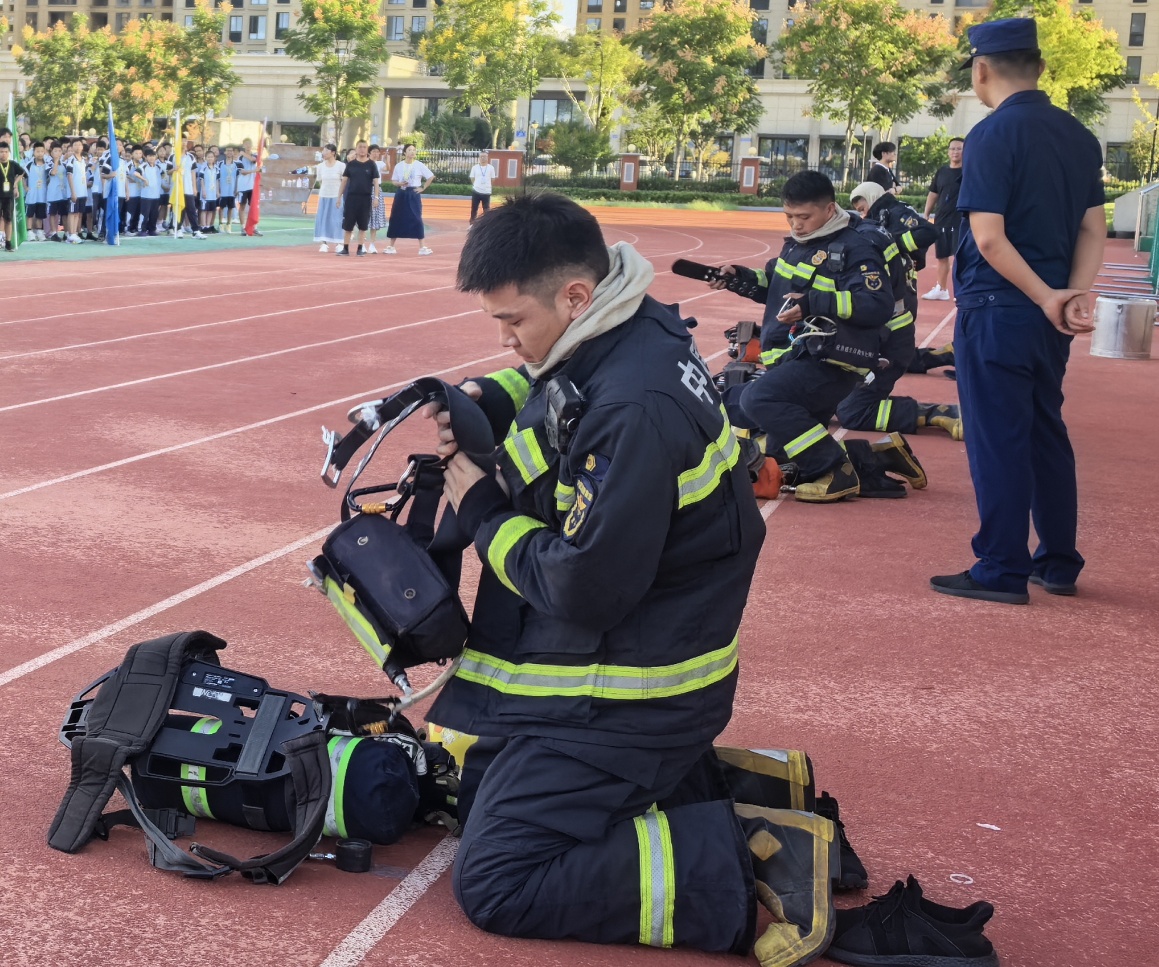 諸暨市楓橋鎮消防隊的隊員們早早將消防車開進了校園,為師生舉行一場別開生面的消防知識宣講活動,指導學生開展消防實操演練。活動分宣講火災撲救與逃生技巧兩個方面。消防隊員在2分鐘內穿戴好裝備,快速奔向消防車,拉出消防水管,打開開關,向起火處噴水澆滅。學生們只專注于操作動作的迅速,水柱的變化多端,不知道這水柱會產生巨大的水壓,形成對消防員的強大后挫力,想不到這是要經過長期枯燥訓練才能把握住水龍,運用才能得心應手。