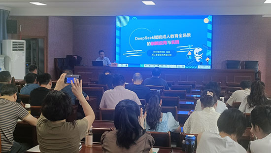 長興職教集團吳錚老師根據前期的培訓需求調查,精心設計了《DeepSeek賦能成人教育全場景的創新應用與實踐》的專題講座,把參訓教師“急難愁盼”的AI應用困惑進行了及時有效的解答,特別是他暖心準備的《吳老師的AI百寶箱》為大家打開了一扇通往AI世界的窗戶,他分享的利用各類AI工具開展的文字、圖片、音視頻、課件等辦公輔助小技巧深受大家的歡迎和喜愛,運用AI工具即興創作歌曲更是把培訓推向了高潮。長興陽光技校資深培訓師吳燕燕分享了如何利用AI找工作、進行工作事務管理以及如何利用DeepSeek和kimi制作清晰的PPT等技巧,特別是她帶來的運用“631法則”解決困擾大家已久的招生問題小妙招讓大家耳目一新。