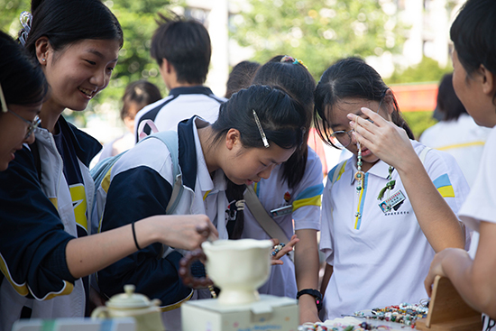 “叮鈴鈴——”,10月10日下午3時(shí),瑞安市職業(yè)中等專業(yè)教育集團(tuán)學(xué)校(以下簡(jiǎn)稱瑞職集團(tuán)校)的放學(xué)鈴聲剛落,原本安靜的校園小廣場(chǎng)瞬間熱鬧起來。同學(xué)們快步匯聚于此,目光被廣場(chǎng)兩側(cè)琳瑯滿目的攤位吸引——一場(chǎng)兼具觀賞性與互動(dòng)性的“民間工藝盛宴”暨非遺文化進(jìn)校園活動(dòng)正拉開帷幕,用指尖上的技藝為師生們帶來沉浸式文化體驗(yàn)。