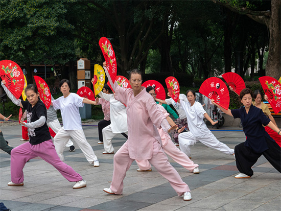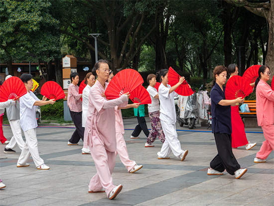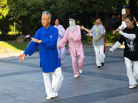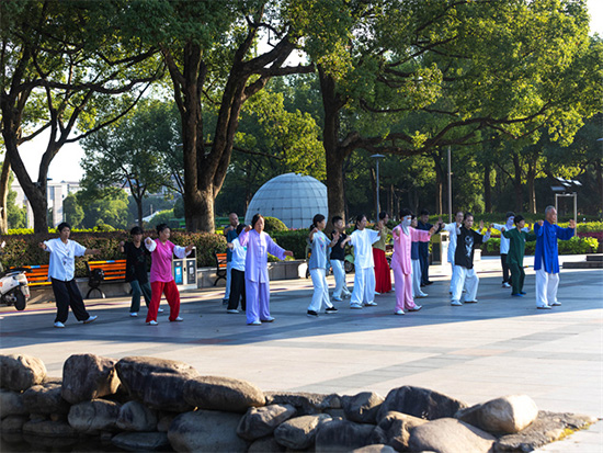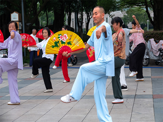 10月13日,陽光正好,微風(fēng)不燥。安吉縣生態(tài)廣場上一派熱鬧景象,由安吉縣社區(qū)教育學(xué)院遞鋪分院組織的老年太極班日常訓(xùn)練活動(dòng)在此順利開展。來自安吉縣各個(gè)村鎮(zhèn)、社區(qū)的30多位老年學(xué)員齊聚一堂,以一招一式的太極動(dòng)作,展現(xiàn)著銀齡群體的活力與風(fēng)采,成為生態(tài)廣場上一道獨(dú)特且動(dòng)人的風(fēng)景線。?