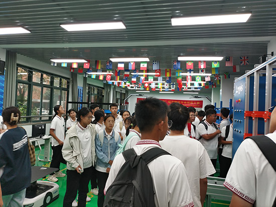 實訓基地參觀環節成為活動亮點。學院物流實訓中心配備自動化立庫與AGV小車、智能分揀系統、VR/AR物流仿真實驗室、國際貨運代理模擬平臺等行業領先設備,還原真實工作場景。據老師介紹,這些“硬核”設施能讓學生在校期間就能掌握實用技能。