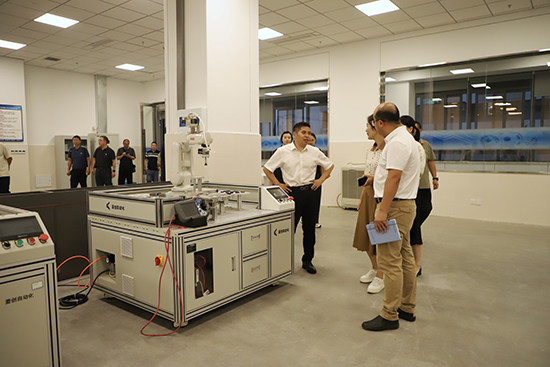 會后,在盧科書記與張武劍校長的陪同下,寧職大與海天集團的領導專家實地考察了學校智能制造、交通運維、供應鏈管理、數智藝術四大專業群的現代化實訓基地,并對學校實訓建設成果給予高度評價。