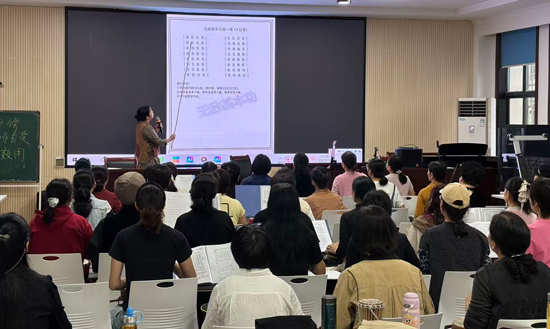 在大家熟練掌握了基礎(chǔ)節(jié)奏后,本節(jié)課的重頭戲——學(xué)習(xí)流行金曲《橋邊姑娘》的非洲鼓伴奏部分正式開啟。禪兮老師將歌曲的節(jié)奏逐段分解,耐心講解每一個(gè)節(jié)拍的重音與技巧,并親自示范。旋律悠揚(yáng)的《橋邊姑娘》與熱情奔放的非洲鼓節(jié)奏巧妙融合,產(chǎn)生了一種獨(dú)特而動人的藝術(shù)效果。學(xué)員們?nèi)褙炞ⅲo跟老師的教學(xué)步伐,從生疏到熟練,一遍遍練習(xí),教室里回蕩著歡快而和諧的鼓聲。