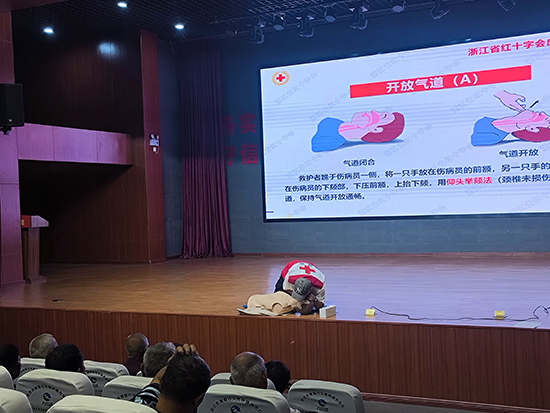 培訓(xùn)現(xiàn)場,來自浙江省紅十字會一級應(yīng)急救護(hù)師丁柏偉講師結(jié)合日常生活中可能遇到的突發(fā)狀況,深入淺出地講解了掌握應(yīng)急救護(hù)知識的重要性。丁講師重點圍繞心肺復(fù)蘇術(shù)(CPR)進(jìn)行了系統(tǒng)教學(xué),內(nèi)容涵蓋如何快速判斷患者意識和呼吸狀態(tài)、如何正確進(jìn)行呼救、胸外按壓的關(guān)鍵步驟(包括按壓部位、深度、頻率和力度的精準(zhǔn)把握)、開放氣道的方法以及實施人工呼吸的有效技巧。講解過程中,講師通過生動的案例剖析,強(qiáng)調(diào)了“黃金四分鐘”對于挽救心臟驟停患者生命的決定性意義。