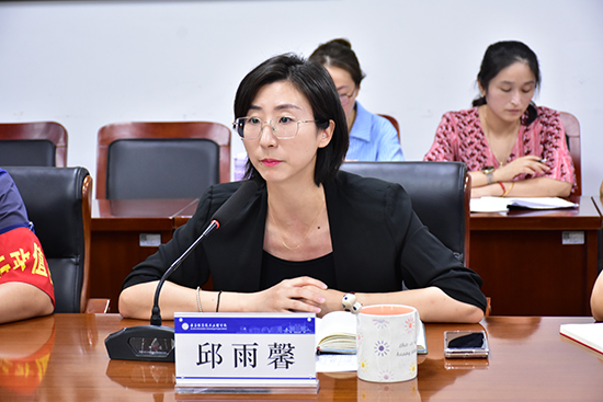 座談會上,學校黨總支副書記、校長邱雨馨就學校綜合高中辦學情況作系統匯報,從班級規模、師資建設、教學模式等方面介紹了辦學基本概況,并結合上學期期末統考與學考成績,詳細闡述了為提升教學質量所實施的五項核心舉措,包括深化校際教研協同、完善學生分流機制、健全教學評價體系等。