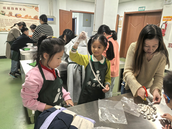 活動現(xiàn)場,琥珀色的糖漿在郭云師傅手中不斷拉扯、翻轉(zhuǎn),逐漸變成銀白色的糖條,引得孩子們陣陣驚嘆。在家長協(xié)助下,小朋友們戴上手套,親手體驗(yàn)扯糖的樂趣。十二歲的李博興奮地說:“看著糖從黃色變成白色,像變魔術(shù)一樣!”