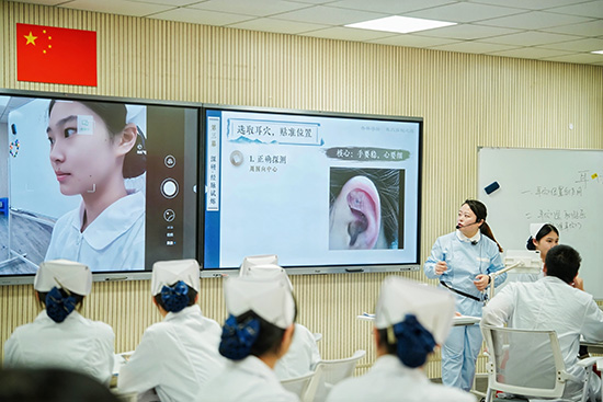 在這一背景下,羅丹老師精心設計并推出了《仁心仁術,養(yǎng)護健康——耳穴壓豆技術》公開課。“我們的學生已具備一定的專業(yè)基礎、臨床操作能力以及初步的中醫(yī)護理思維。在此基礎上,我們與時俱進,推動中西醫(yī)護理知識的融合創(chuàng)新,為護理實踐注入更多元、更貼近群眾健康需求的技術力量。”羅老師說。