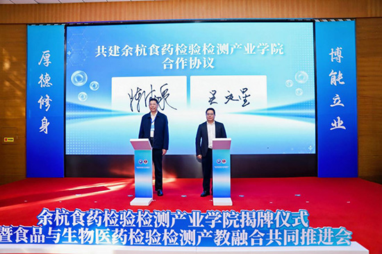 余杭區教育局黨委書記、局長吳文星與浙江經貿職業技術學院校長陳德泉共同簽署《共建余杭食藥檢驗檢測產業學院合作協議》,標志著校地合作從“規劃”邁向“落地”。