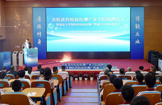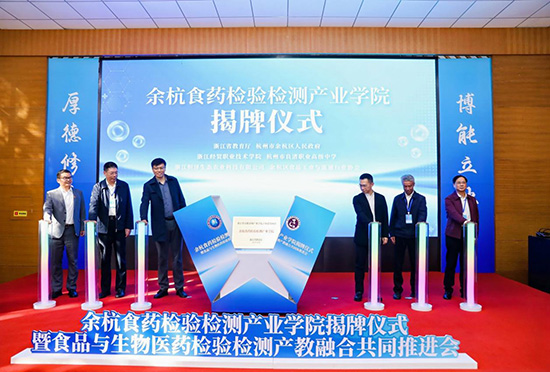 為積極響應浙江省首批縣域產業學院建設的戰略部署,破解“產教兩張皮”難題,同時為填補地方食藥研發檢測等產業環節的人才結構性缺口,將教育資源轉化為縣域產業發展動力,為區域主導產業定向培養技能人才。10月23日,余杭食藥檢驗檢測產業學院揭牌儀式暨食品與生物醫藥檢驗檢測產教融合共同體推進會在杭州市良渚職業高級中學報告廳隆重舉行。