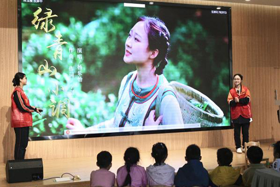 簽約儀式后,學校幼兒保育專業學生們為南太湖幼兒園的幼兒們帶來一場生動有趣的志愿服務活動《江南童韻樂——綠青山小調組歌音樂活動》。活動中,學生們化身“小老師”,用童趣化的語言向幼兒講解《綠青山小調組歌》中蘊含的生態環保理念與湖州本土非遺文化,通過歌曲學唱、節奏律動、樂器互動等形式,引導孩子們感受音樂之美、自然之美。幼兒們積極參與、踴躍互動,現場氛圍熱烈溫馨。