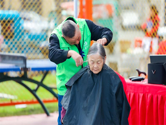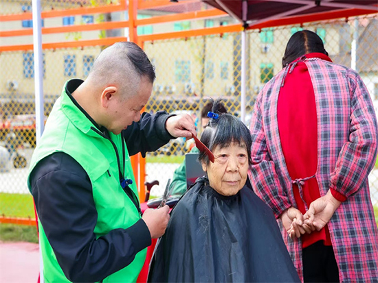 從調整發長到修剪劉海,從梳理造型到清理碎發,理發師傅們一絲不茍,根據每位老人的臉型、發質特點量身設計發型。當天,共有30多位老年人享受到了這場“家門口的福利”,原本有些凌亂的頭發經過修剪后變得整潔利落,老人們對著鏡子露出滿意的笑容,連連稱贊:“不用出門就能剪頭發,師傅手藝還好,真是太方便、太貼心了!”