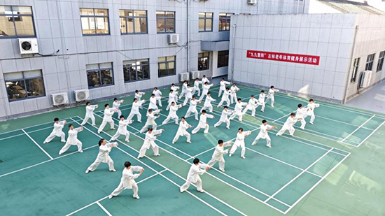 太極項目展神韻:活動在太極班學員們的展演中拉開帷幕。50多名身著統一白色太極服的學員,隨著悠揚舒緩的音樂,依次展示了老年楊氏26式拳、32式劍、52式刀等經典太極招式。隨后,學員們又帶來了木蘭雙劍和單扇的精彩表演,展現出了老年人特有的精神風貌與藝術風采。