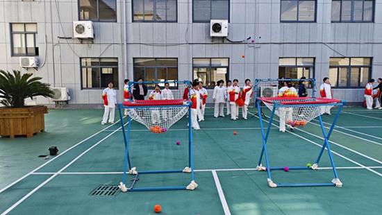 趣味運動添活力:本次活動特別設置了兜球、嗒嗒球等新興適老化運動項目。在暑期剛完成升級改造的專屬場地上,學員們興致勃勃地體驗著這些新穎的運動項目。兜球體驗區內,大家手持兜球,在將球拋向目標網兜的過程中,鍛煉身手協調,感受運動帶來的樂趣;嗒嗒球場地上,他們揮動球拍,隔網對攻,在清脆的“嗒嗒”擊球聲中增強機體活力,促進身心健康。這兩項運動以其簡單的規則、十足的趣味和適中的運動量,深受老年朋友的喜愛。