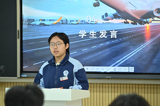 隨后,同學們自信地用英語分享了他們選擇飛機維護工程的初心、入學以來的學習感悟與收獲,并暢談了對未來職業發展的憧憬。同學們較為流利的英語表達能力、對專業的深刻理解以及立志成為卓越航空機務人才的遠大志向,贏得了Williams教授的高度贊許和在場師生的陣陣掌聲。