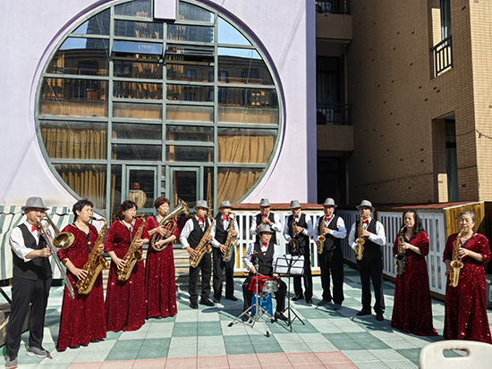 在孩子們的表演落下帷幕后,六和社區(qū)的老年學堂文藝隊伍緊接著登場。這支由社區(qū)長者組成的隊伍,用專業(yè)的才藝為活動再添精彩,將重陽節(jié)的祝福直接送到幼兒園小朋友的爺爺奶奶心中。