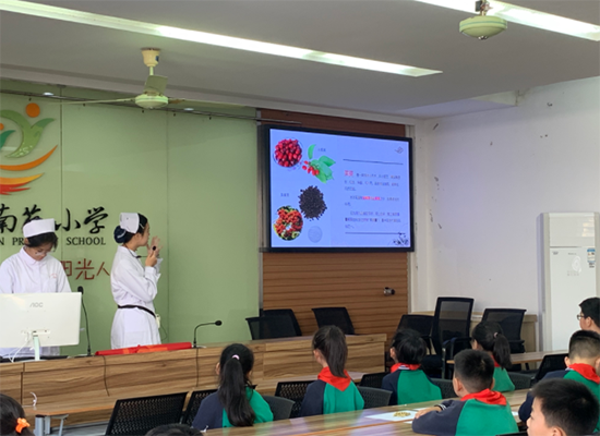 “獨在異鄉為異客,每逢佳節倍思親……”活動現場,2506班的同學們化身“小老師”,通過精心準備的PPT課件,以通俗易懂的語言向小學生們介紹了重陽節的由來與傳統習俗。在講解唐代詩人王維《九月九日憶山東兄弟》時,他們特別介紹了重陽插茱萸的古老習俗,并講解了吳茱萸和山茱萸區別,讓小朋友們直觀感受中醫藥文化的魅力。
