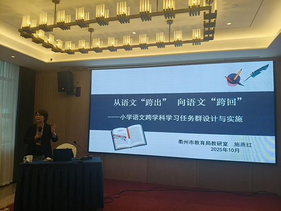 柯城區(qū)鹿鳴學(xué)校書(shū)記、校長(zhǎng)鄭美宏以《中小學(xué)科創(chuàng)發(fā)展的鹿鳴實(shí)踐:從理念到行動(dòng)的全面革新》為題,分享了學(xué)校短期激發(fā)學(xué)生科學(xué)興趣、長(zhǎng)期培養(yǎng)基礎(chǔ)能力,構(gòu)建“空間+三級(jí)課程+項(xiàng)目驅(qū)動(dòng)+評(píng)價(jià)閉環(huán)”科創(chuàng)教育立體網(wǎng)的完整實(shí)踐。衢州市教育事業(yè)發(fā)展中心王榮明作了題為《人工智能背景下的智慧校園建設(shè)與應(yīng)用》的分享。他指出生成式AI有內(nèi)容生成、多模態(tài)等特點(diǎn),賦能教育需依托數(shù)據(jù)、算法、算力三要素,還明確AI可替代部分重復(fù)勞動(dòng),但無(wú)法取代教師的“溫度、互動(dòng)、陪伴、引導(dǎo)”——教師仍是學(xué)生心理健康的守護(hù)者與成長(zhǎng)引路人。衢州市教育局教研室副主任徐宏武圍繞《核心素養(yǎng)導(dǎo)向下作業(yè)設(shè)計(jì)的思考與實(shí)踐》主題展開(kāi)分享,提出“無(wú)目標(biāo)不設(shè)計(jì)”等核心素養(yǎng)導(dǎo)向的作業(yè)設(shè)計(jì)“六大原則”。他借鑒學(xué)者觀點(diǎn),強(qiáng)調(diào)作業(yè)“重質(zhì)輕量、承認(rèn)差異”需分層,通過(guò)四類作業(yè)構(gòu)建協(xié)同育人橋梁,讓作業(yè)成為“思維成長(zhǎng)階梯”而非“負(fù)擔(dān)”。衢州市教育局教研室小學(xué)語(yǔ)文教研員施燕紅聚焦小學(xué)語(yǔ)文跨學(xué)科教學(xué)要點(diǎn),作了主題為《從語(yǔ)文“跨出”向語(yǔ)文“跨回”——小學(xué)語(yǔ)文跨學(xué)科學(xué)習(xí)任務(wù)群設(shè)計(jì)與實(shí)施》的分享。講座兼具理論與實(shí)踐,立足語(yǔ)文本質(zhì)、融合多領(lǐng)域資源,還借案例拆解方法,助教師突破學(xué)科邊界,為落實(shí)學(xué)生核心素養(yǎng)提供清晰路徑。