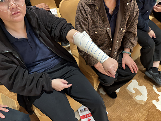 考慮到酒店崗位特性,培訓(xùn)特別加入場(chǎng)景化演練環(huán)節(jié)。針對(duì)工程部員工日常作業(yè)可能面臨的器械劃傷、磕碰等情況,以及前廳部員工接待賓客時(shí)可能遇到的客人意外跌倒、擦傷等突發(fā)場(chǎng)景,丁柏偉老師現(xiàn)場(chǎng)模擬真實(shí)情境,指導(dǎo)員工如何規(guī)范操作救護(hù)流程,確保在緊急時(shí)刻能“懂急救、會(huì)操作、敢處置”,將理論知識(shí)轉(zhuǎn)化為實(shí)戰(zhàn)能力。