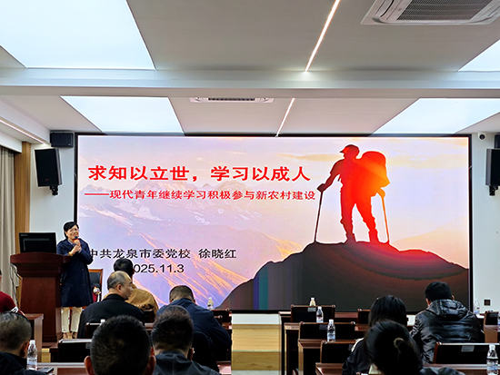 隨后,特邀嘉賓市委黨校的徐曉紅老師為新生帶來了題為《求知以立世,學習以成人——現代青年繼續學習積極參與新農村建設》的開學第一課。徐老師結合時代發展趨勢,闡釋在新時代,學習不僅是一種謀生的手段,更是一種應對時代巨變、安頓自我的立世之本和成人之道。課堂上,徐老師從持續學習是精神成長和自我實現的通行證,滋養內心世界的源泉;是解決問題,提升效能的階梯;是保持心智活力,延緩認知衰退的良方;是社會和諧進步的粘合劑,履行公民職責的理性基石;是促進社會包容,消弭偏見與隔閡的橋梁五個維度強調了繼續學習的重要性。鼓勵新生們緊跟時代步伐,積極學習新技能、新技術、將終身學習貫徹到底。
