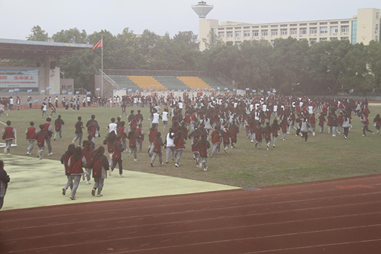 當天中午12時30分,公寓火災應急疏散演練啟動。全體師生提前集結田徑場,隨著呂未寒副校長一聲令下,學生們以濕毛巾捂口、低姿彎腰,在消防警報與引導組的指揮下,沿安全通道迅速撤離。整個過程僅用時3分24秒,全程緊張有序、響應高效,展現出師生良好的應急素養。