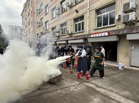 11月7日,系列活動迎來高潮。上午8時40分,4號公寓東側空地陸續開展分批次滅火演練。從保安、食堂員工到師生代表,參演人員在消防教官的指導下,逐一上手操作干粉滅火器,精準掌握“提、拔、握、壓”四字要訣,實現從“知道”到“會用”的關鍵跨越。