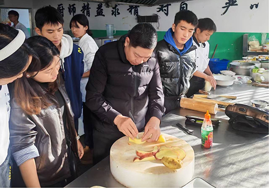 寧波市甬江職業(yè)高級(jí)中學(xué)周偉忠為學(xué)生示范土豆雕刻操作