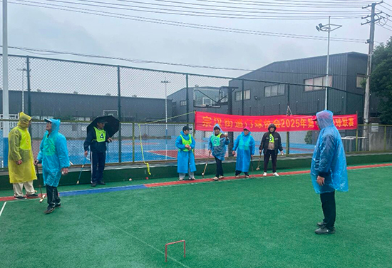 “雨腳織簾籠賽場,銀發揮桿競風流。”11月7日下午,淅瀝雨絲縈繞周塘西村門球場,由慈溪市宗漢社區教育中心聯合宗漢街道老齡委、老體協共同主辦的門球聯賽第十一輪賽事,冒雨如期開賽。濕滑的場地雖讓擊球難度陡增,卻絲毫未減選手們的參賽熱情,反而成為街道門球愛好者展現身心韌性與團隊協作精神的獨特賽場。