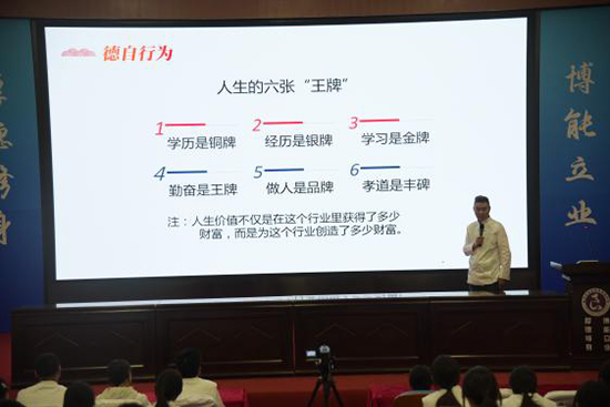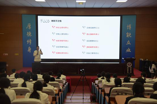 最后李林生大師指出烹飪更核心的是“立德”:李大師分享“事業(yè)做加法、人脈做乘法、享受做減法、心態(tài)做除法”的“人生四法”,叮囑大家牢記“信人不騙、幫人不忘”的處世底線,并寄語新生“學(xué)歷銅牌、勤奮王牌”等“人生六張王牌”,并擲地有聲強(qiáng)調(diào):“人生價(jià)值不僅是在這個(gè)行業(yè)里獲得了多少財(cái)富,而是為這個(gè)行業(yè)創(chuàng)造了多少財(cái)富” 。諄諄教誨,讓現(xiàn)場師生受益匪淺。