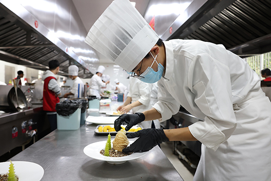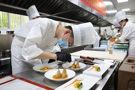 烹飪:通過展示中式熱菜、西式點心、果蔬雕刻、冷拼擺盤等多項技藝,既考驗學生的基本功底,也強調創新意識與審美素養,通過技能實操與作品介紹全方位展示各自專業素養。