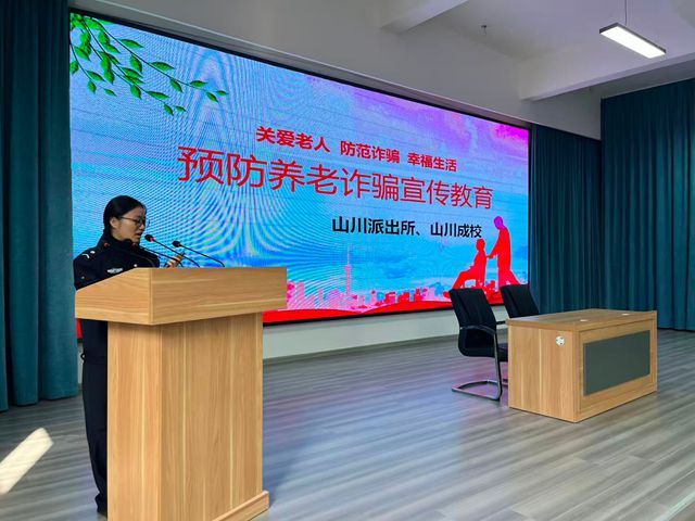 為讓反詐知識入腦入心,培訓采用“案例剖析 + 互動問答”的形式。民警針對老人們提出的疑問逐一耐心解答,現場發放反詐宣傳手冊,并指導大家安裝國家反詐中心 APP,講解預警功能的使用方法。山川成校的工作人員則協助民警維持秩序,為行動不便的老人提供幫助,確保培訓覆蓋每一位到場群眾。