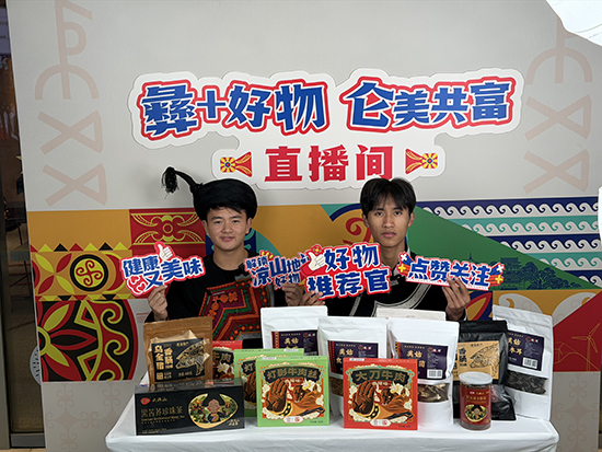 鏡頭前,已學習電商專業近三年的曲比木日顯得從容自信。他不僅詳細講解產品特點,還不時拿起野生菌、苦蕎等特產多角度展示,讓屏幕另一端的網友直觀感受大涼山產品的優良品質。身旁的地惹小虎雖然是首次參與大型直播,也毫不怯場,兩人配合默契,實時回應評論區提問。