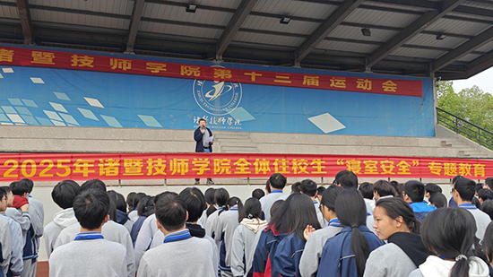 為進一步夯實校園宿舍安全基礎、提升住校生自我管理能力,諸暨技師學院近日開展寢室安全專題教育周,著力推動寢室治理提質增效。其間,學校以寢室為陣地,統籌安排一次面向全體住校生的集中宣講、一場聚焦寢室長的工作部署,兩條主線交織推進,讓制度教育與日常管理同頻共振,使紀律與溫度同在、規則與成長并行。