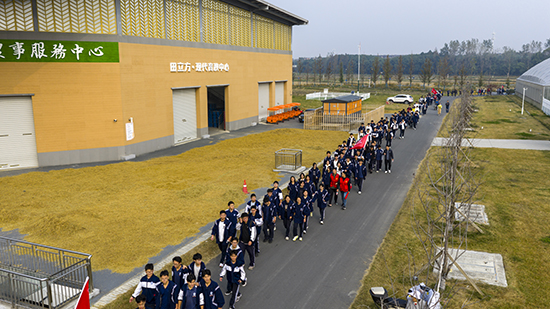 這項在每年“立冬”舉行的傳統特色實踐活動,盡管因天氣的原因推遲一周舉行,但同學們依舊興致盎然。活動整個路程超過10公里,行進途中,師生們精神飽滿、步伐矯健,展現了堅韌的意志品質與良好的精神風貌。田立方·臨平未來農場是由臨平區政府與浙江省農發集團共同打造的都市田園創新示范區,通過對原有鄉村土地的連片整治,形成集約高效的農業空間。無論在農文旅融合區域,還是在未來農業探索區,師生們通過農業景觀與現代科技交織的現實畫卷,感觸到了時代發展躍動的脈搏,為毅行增添了探索之趣。