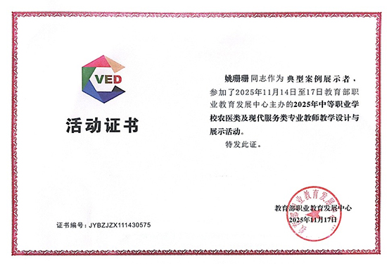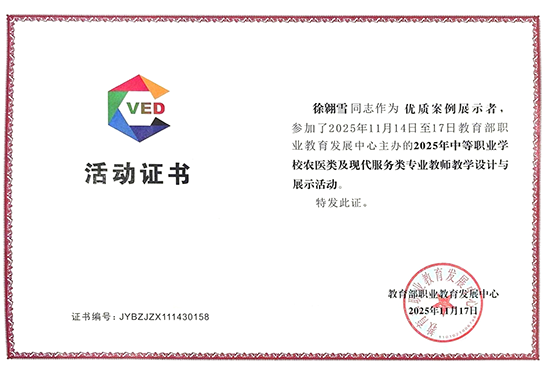 作為中職教育領域的權威賽事,本次活動聚焦專業教學與實際崗位需求的融合,覆蓋農醫類、現代服務類等多個專業方向。該校姚珊珊和徐翱雪兩位老師憑借對專業教學規律的深度把握與前瞻設計,在全國眾多參賽者中脫穎而出。