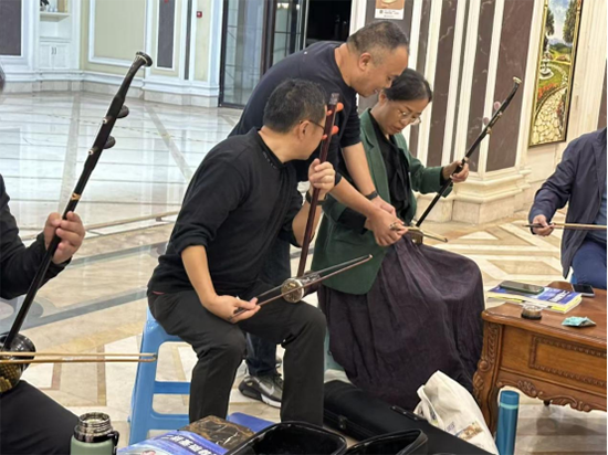 課前,陳雪龍老師早早到場,逐一接過18名學員的二胡,俯身細致調試琴弦松緊、校準音準,確保每根弦的張力都達到最佳狀態。調試完畢,他端坐案前、輕執琴弓,《二泉映月》的婉轉旋律與《母親》的溫情曲調緩緩流淌,瞬間化解了學員們的拘謹,讓現場氛圍變得溫馨動人。