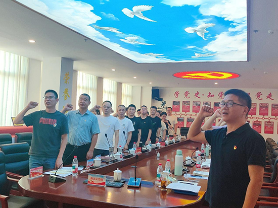 授牌結(jié)束后,全體黨員起立,開啟莊嚴(yán)的集體宣誓環(huán)節(jié)。陳書記帶領(lǐng)大家高舉右拳,以鏗鏘有力的聲音宣讀誓詞,誓言中不僅蘊(yùn)含著對黨的教育事業(yè)的忠誠,更包含著三大黨小組踐行“先鋒”使命、堅守“廉潔”底線的鄭重承諾。“要以‘匠心’守初心,以‘文心’育新人,以‘創(chuàng)新’開新局”,這場宣誓既是一次靈魂的洗禮,更是三大黨小組明確育人方向、強(qiáng)化責(zé)任擔(dān)當(dāng)?shù)木駝訂T。
