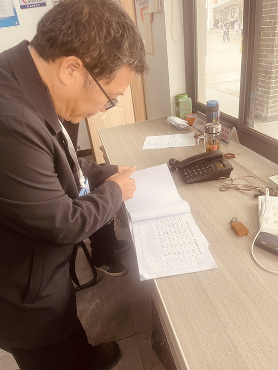 在王冕小學,督查組同樣重點檢查了警務室安防工作,確認保安能熟練使用各類安防器械、值班記錄完善,一鍵報警器可快速啟動。在與校長趙娜共同填寫專項整治表格時,督查組發現該校嚴格執行上級政策法規,各項工作規范有序,對相關要求熟知于心、落實到位。
