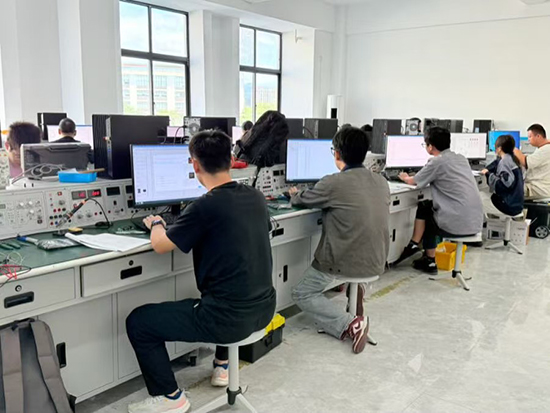 電子技術(shù)項(xiàng)目聚焦實(shí)踐應(yīng)用,23名教師在瞻淇樓電子實(shí)訓(xùn)室同場實(shí)操,精準(zhǔn)完成電路設(shè)計(jì)、安裝與調(diào)試,展現(xiàn)出嚴(yán)謹(jǐn)細(xì)致的專業(yè)作風(fēng)與精益求精的工匠精神。各賽場秩序井然,氛圍專注熱烈,集中彰顯了本市中職教師精湛的技能功底與昂揚(yáng)的職業(yè)風(fēng)貌。