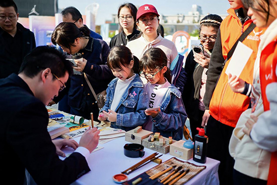 “文脈賡續”以沉浸式體驗喚醒城市記憶,一幅幅老照片、家書與實物展陳,講述了近代寧波人“走遍天下、學遍天下”的闖蕩故事,現場書法、活字印刷體驗和“王陽明”“黃宗羲”cosplay互動吸引了不少小朋友和年輕人。